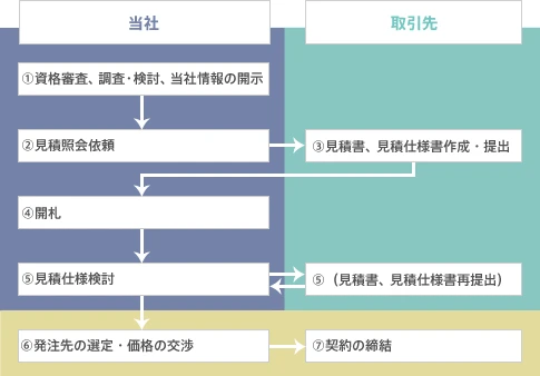最終的な発注先及び契約価格は当社見積条件を満足する第1順位見積者との交渉を通じて合理的に決定します。