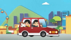 クルマの素材に、衝突安全性と軽量化を両立できる最先端の鉄(ハイテン)が使われていることを3きょうだいが熱弁するストーリーです。(0:30)