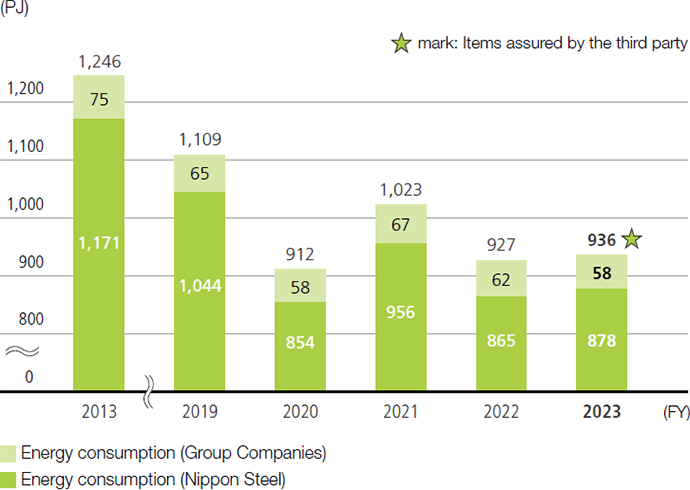 Nippon Steel Group’s energy consumption and energy-derived CO2 emissions
