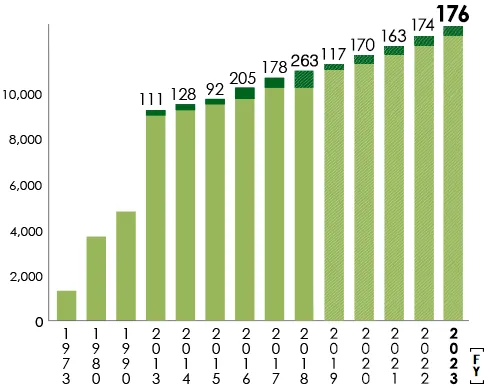 Nippon Steel has adopted environmental accounting to be used as guidelines for corporate activities, and to accurately track the environmental costs and effects. Environmental conservation costs, which combine the costs of capital investment associated with environmental measures, energy-saving measures, and recycling measures, and expenses incurred to conserve the environment, totaled ¥213.6 billion in fiscal 2023: ¥17.6 billion for capital investment and ¥196.0 billion for environmental conservation.