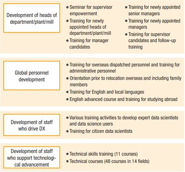 Further, to train future employees in our domestic and overseas businesses, we have incorporated, in the training courses by rank, a program for acquisition of the knowledge and skills necessary for business management.