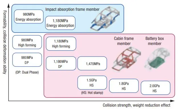 We are contributing to the reduction of environmental impact by developing and expanding the application of high-tensile steel sheets to achieve both weight reduction and collision safety of automobiles, developing high-efficiency electrical steel sheets for hybrid and electric vehicles, and improving fuel efficiency through the development of underbody products. We are proposing the NSafeTM-AutoConcept ECO3, a next-generation steel automobile concept for the era of carbon neutrality. The cold-forming technology of ultra-high-strength steel sheets, which forms the core of this concept’s processing technology group (NSafe-Form Series), was awarded the “Grand Prize of the Society of Technology of Plasticity” (2023) at the 58th Japan Society for Technology of Plasticity.