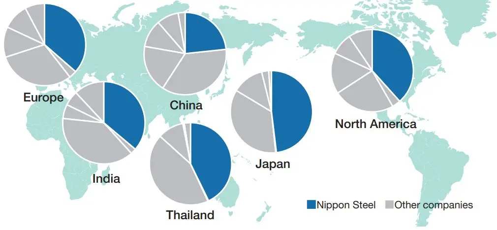 The Nippon Steel Group holds a high share of patents in major global markets compared to its competitors in Japan and overseas.