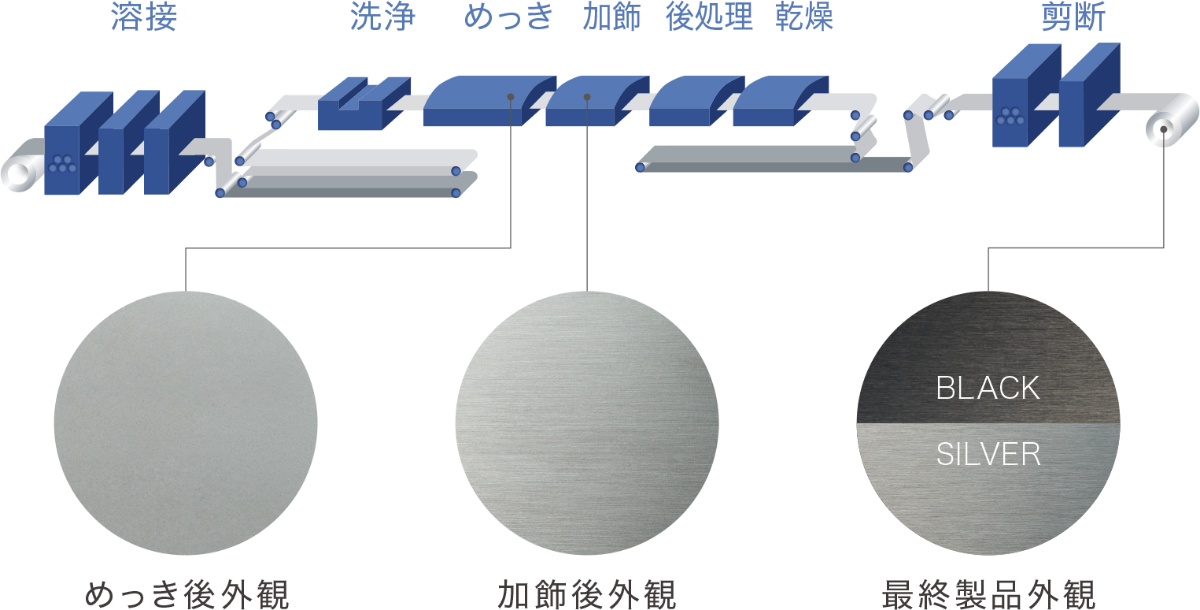 金属そのものの高い輝度を持つ、上質なサーフェースです。
