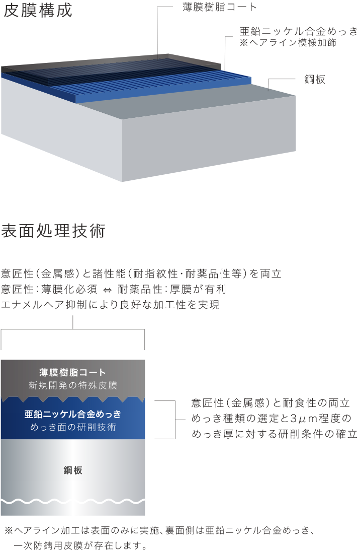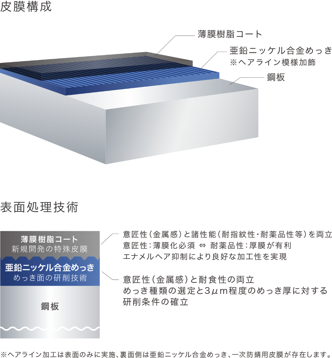深絞り材を選べるなど、ベースの鋼板を多彩にラインナップしています。