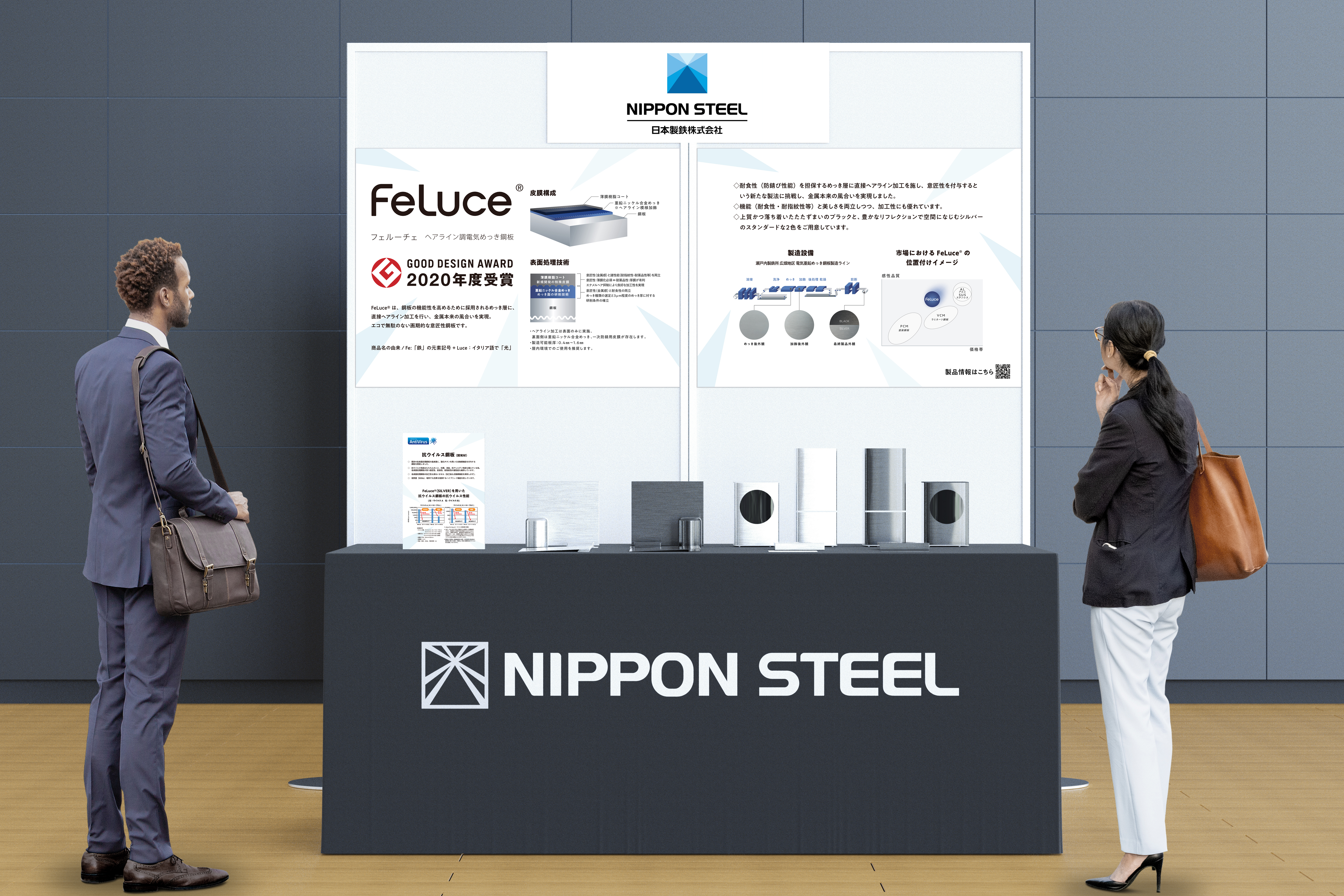 金属本来の美しさを追求した新製品ヘアライン調電気めっき鋼板「FeLuce®」の現物を直接ご覧いただきながらご相談が可能です。