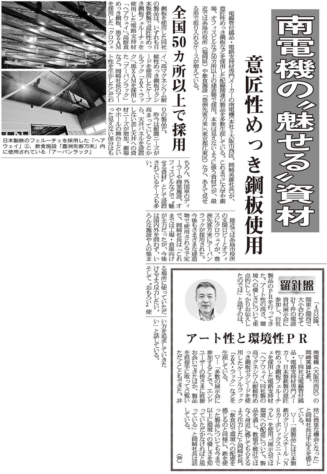 産業新聞に『南電機の“魅せる”資材/意匠性めっき鋼板使用/全国50カ所以上で採用』が掲載されました。