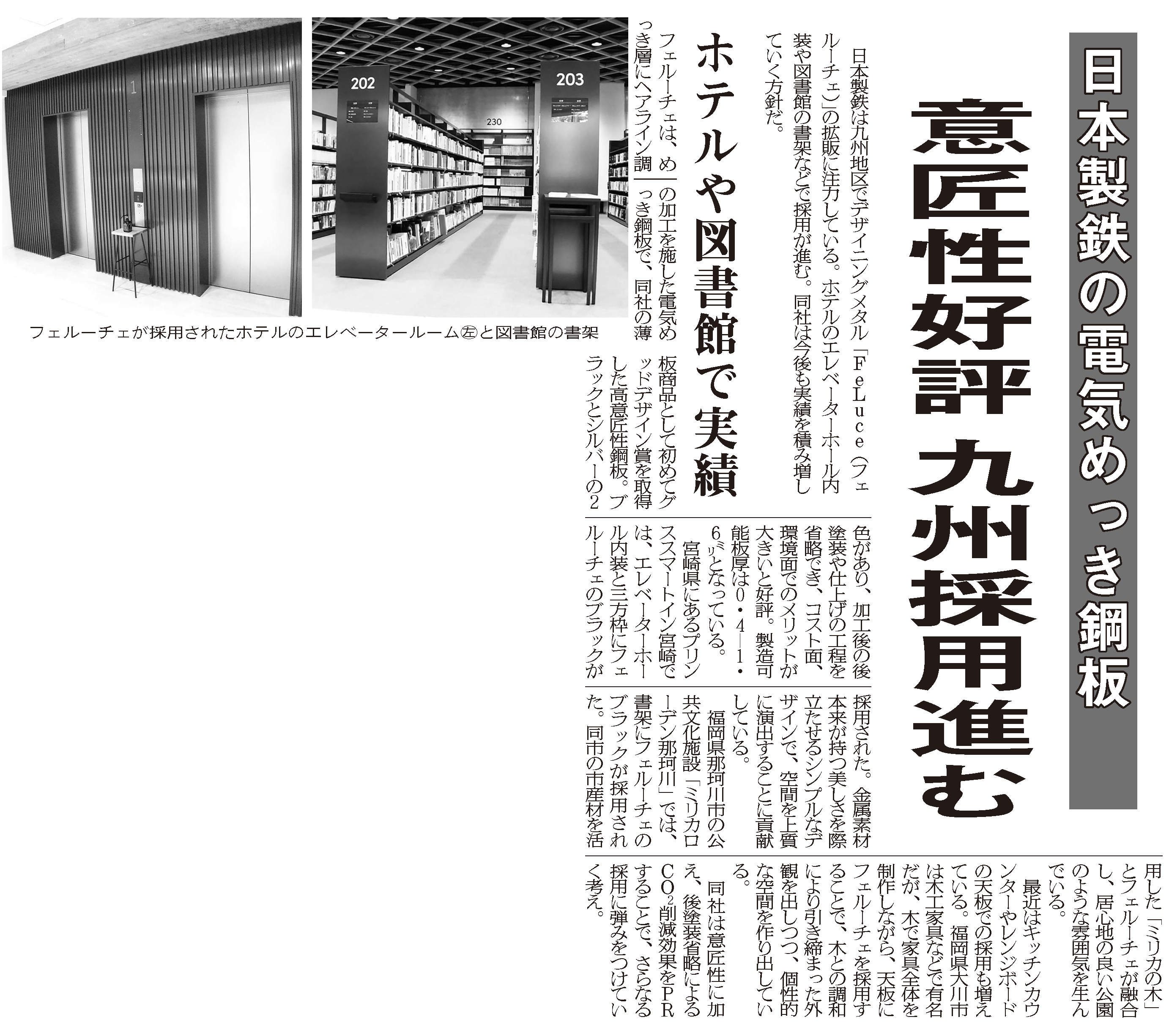 産業新聞に『日本製鉄の電気めっき鋼板/意匠性好評 九州採用進む/ホテルや図書館で実績』が掲載されました。