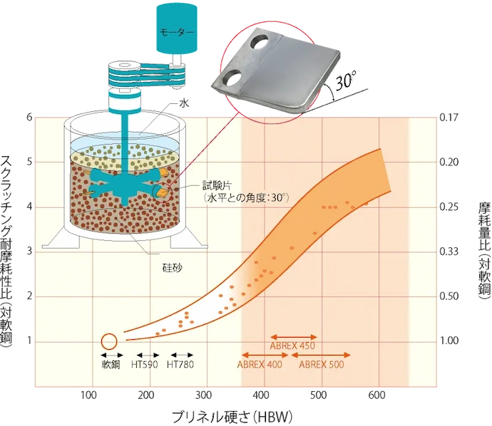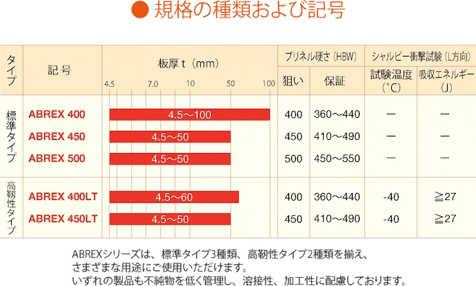 すぐれた耐摩耗性、高い溶接性、豊富な規格とサイズ、良加工性が特長です。