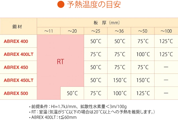 ABREXなら、少ない予熱でのスピード溶接