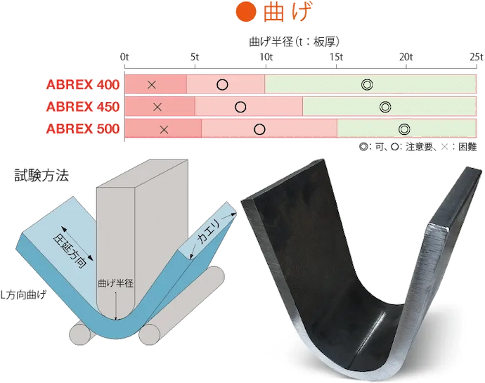 ABREXなら、曲げ加工にも耐える、曲げて使用も可