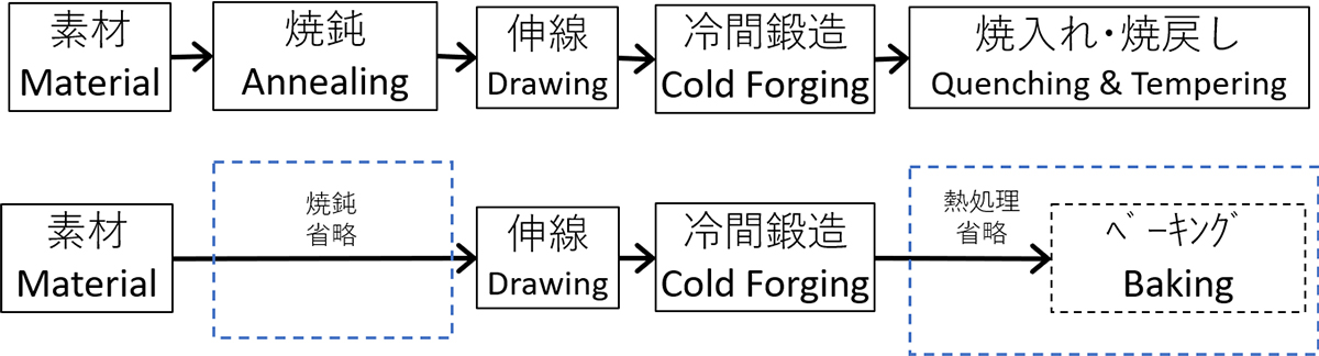 - 二次加工時の焼鈍省略+ボルト熱処理省略できる
