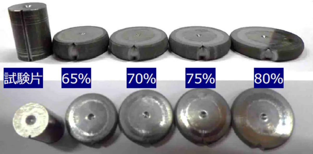 加工特性評価(切欠きを入れたサンプルを据え込みで潰したワレ評価試験)