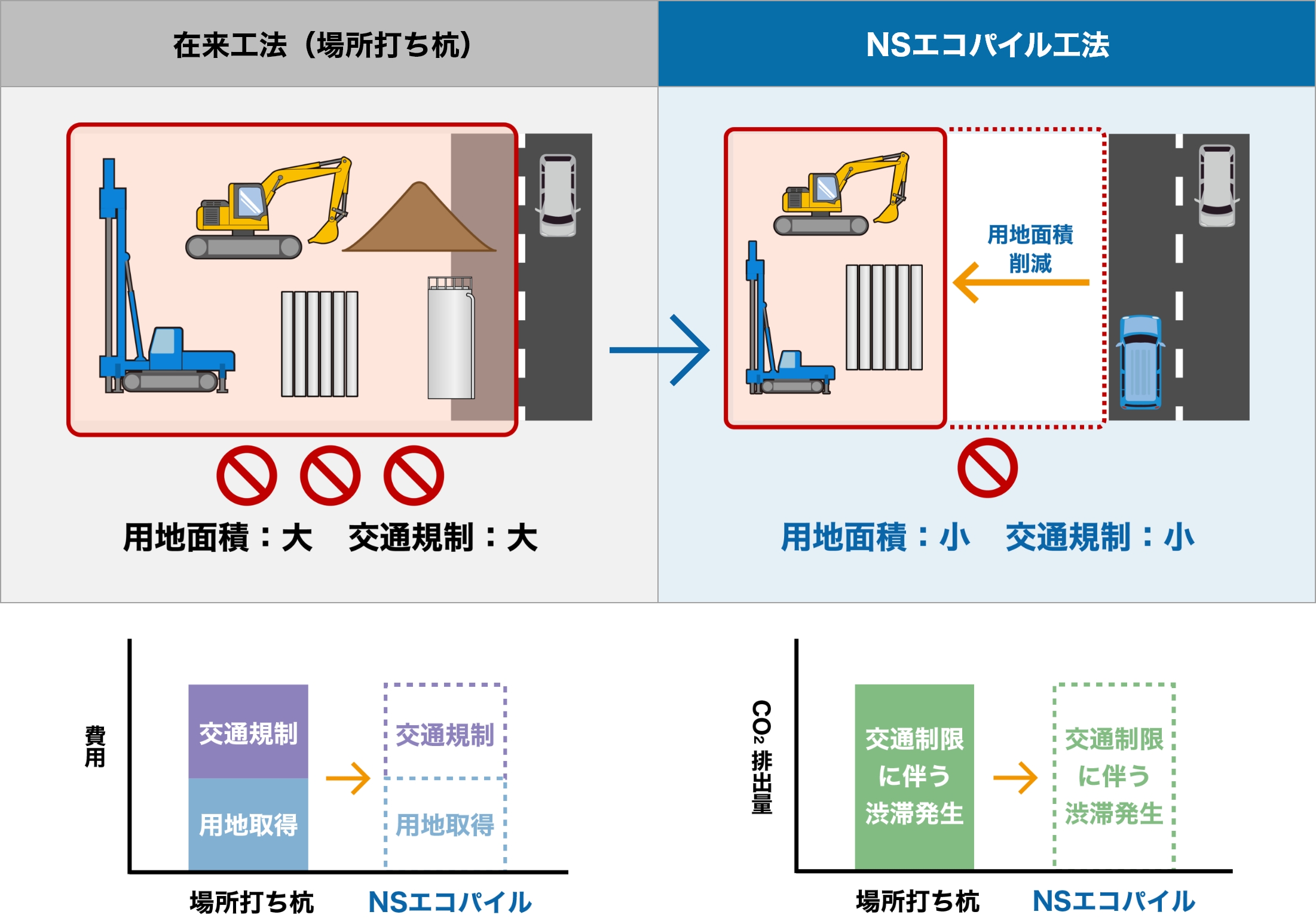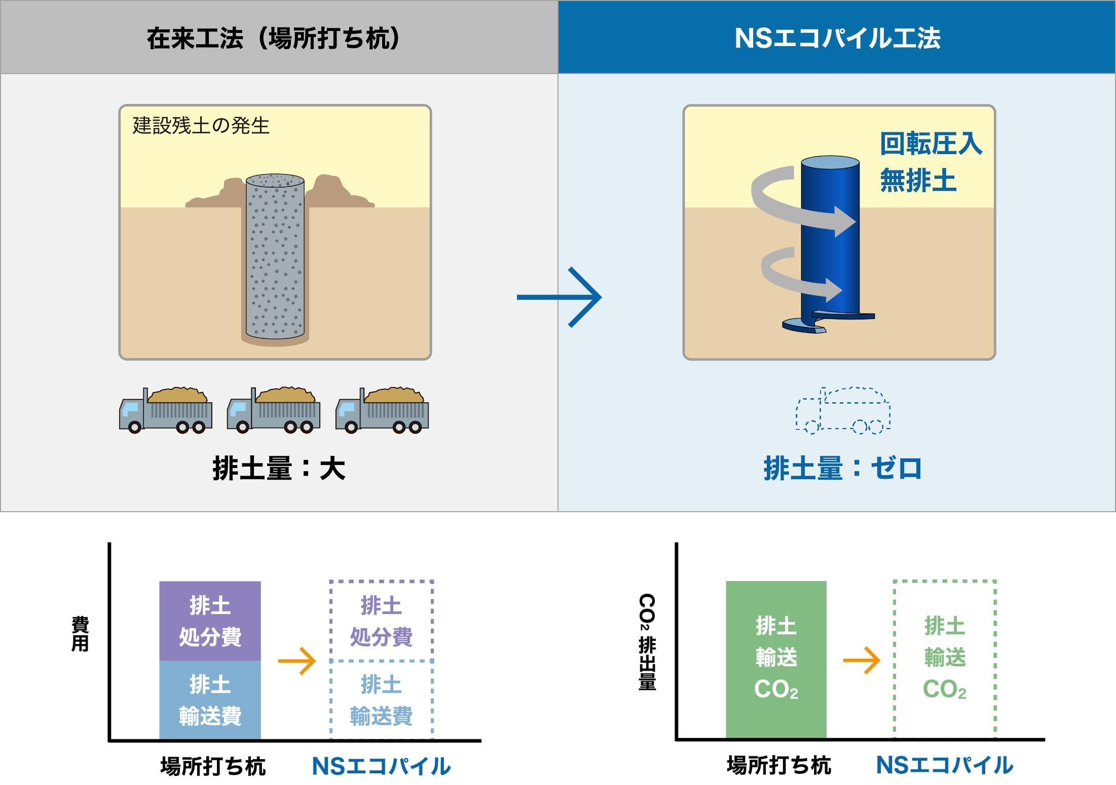 無排土・低振動・低騒音施工などの環境負荷低減を実現したソリューションです。