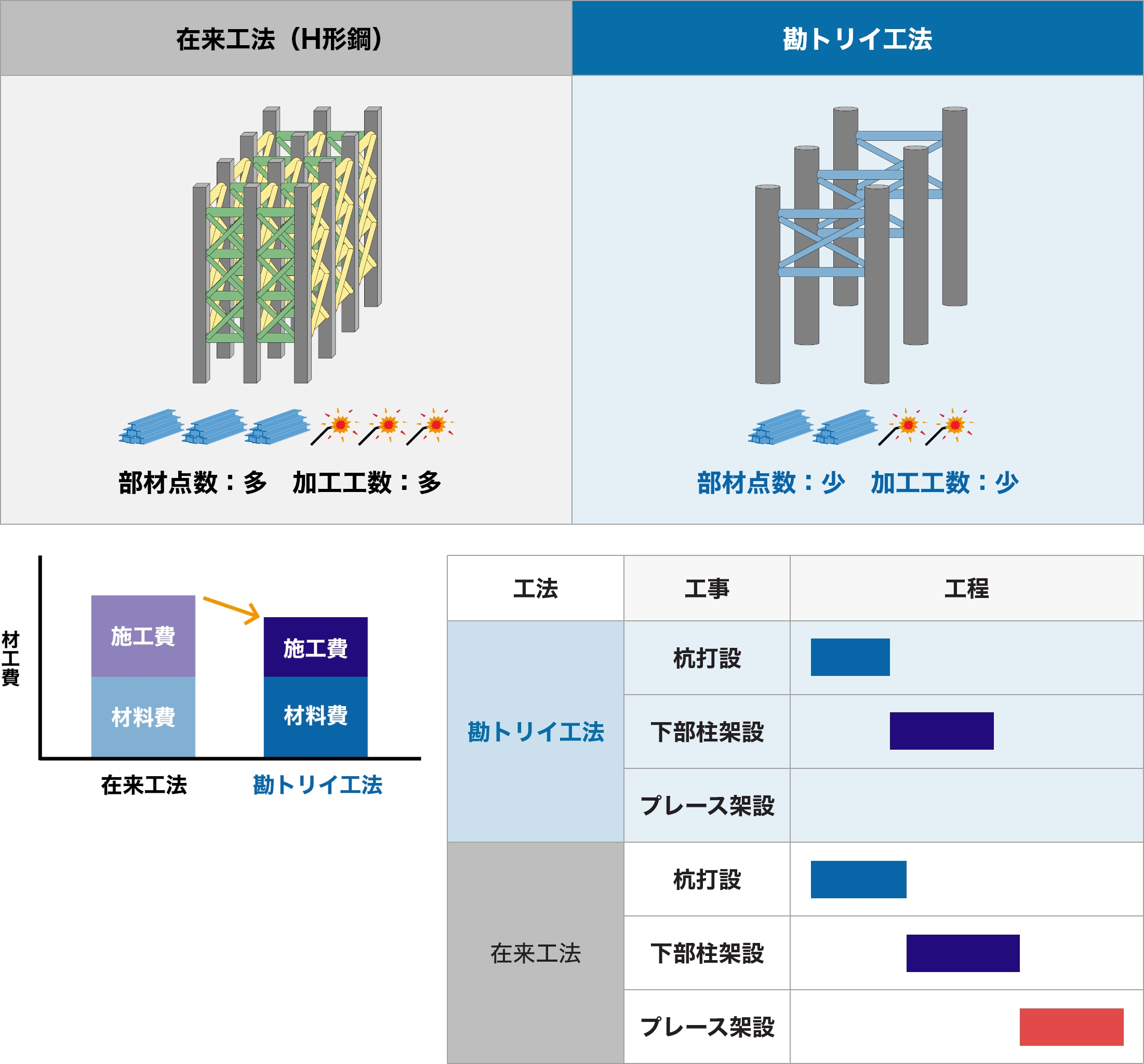安全性向上、特殊作業の低減に加えて、工事全体の工期短縮・コスト削減を実現