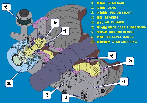当社は大正8年に歯車専用工場を建設し、車両用吊り掛け式歯車をはじめ、各種機械の歯車を製造してまいりましたが、昭和20年代後半、車両の高速化と共に平行カルダンおよび直角カルダン駆動装置の製造に着手し、それ以降、鉄道車両用駆動装置、歯車形軸継手などを一貫して設計・製造しております。現在では、性能・構造・保守を考慮した独自設計、高度な製造技術と設備により、新幹線をはじめ、国内、海外の需要家のみなさまにご使用頂いております。