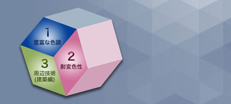 チタンの意匠加工は大気酸化法、陽極酸化法、化学酸化法があります。大気酸化法は、チタンを大気中で加熱し表面に形成した酸化皮膜の反射光と内部反射光との干渉作用により発色します。ただしバリエーションが少なく、次に述べる陽極酸化法の実用化がもっとも進んでいます。陽極酸化法とは、リン酸などの水溶液中でチタンを陽極にし電流を流すことでチタン材の表面に酸化皮膜を形成する処理によって、膜圧に応じた干渉色が生じます。