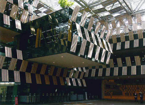 鉄やチタンといった金属素材は、工業製品で人工的と思われがちです。しかし金属素材を形成する元素は、地球をつくっている材料です。だから、ぼくは金属素材を大地から手に入れた大切な贈り物だと思っています。この大地から手に入れた感覚を、建築のなかに感じられるような使い方をしたい、単なる工業製品という使い方はしたくないと考えています。 20世紀の公共建築は、都市の成長や規模の拡大に応じて、町の中心から郊外へ移動し、駐車場のなかの孤立したコンクリートの箱となる傾向がありました。この時代の流れを反転させるため、21世紀の建築に一番大切なことは何か、自問自答を繰り返しました。その場所に残るような絆を構築できる建築について、ぼくはずっと考え続けました。 例えば、新潟にあるアオーレ長岡では、立地を街の中心部に戻して、市庁舎という大きな建物のなかに、市民のコミュニケーションの中心となるナカドマと名づけた土間を設けました。壁には木をたくさん使い、建築をあたたかくして、人の絆を喚起しました。鉄も大事な主役としてデザインしています。ガラス張りの鉄骨トラス造の大屋根から、柔らかい自然光がナカドマに降り注ぎます。仰々しい建物の外観が消え去り、土と木の質感だけが残ります。 アオーレ長岡には、毎日のように集まる常連ができたそうです。大変うれしいことです。素材の力が大きかったと思います。