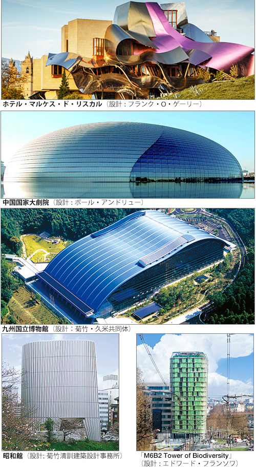 中﨑: これまで建築の金属材料では,鉄やアルミ,銅が建材として多く使われてきました。近年,それらとは違った特性をもつチタン(Titanium)が建築用材料として進化し,既存建材からの置換えも行われていると聞きます。そしてさらなる活用をめざして, 隈研吾さんにお声がけしたチタンのプロジェクトも進行しています。