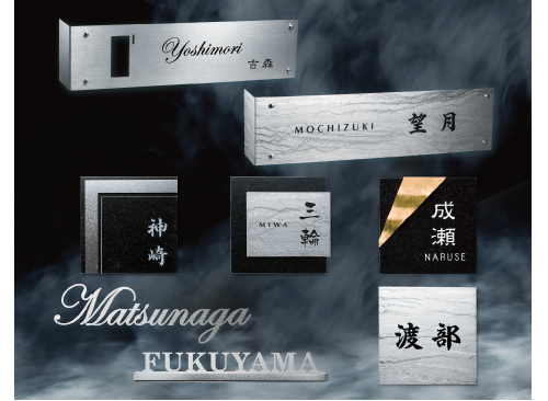 それから年月を経て、様々な国のスタイルを取り入れて進化した住宅のデザインと共に表札も進化しなければとステンレスやアルミ、アイアン、ガラス、陶磁器など、さまざまな素材を取り入れ、そこにアイディアと技術を組み合わせ数々の革新的な表札を生み出してきました 。