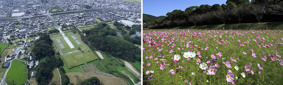 約1300年前、当時の太宰府には、九州全体を管轄する「大宰府」(オオミコトモチノツカサ)という大きな役所が置かれ、約500年の長い間、その役割を果たしていました。今もその歴史をしのばせる大宰府跡や水城跡に加え、観世音寺、太宰府天満宮など市内に数多くの史跡や名所が存在し、毎年数多くの観光客が訪れていることから、サービス業を中心とした第三次産業が盛んなまちです。 また、福岡市からもほど近く、交通アクセスも比較的良い本市は、「史跡や緑にめぐまれた福岡都市圏の住宅都市」として発展しています。