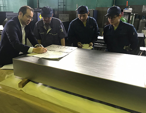 4月1日に新元号「令和」が発表されたことに伴い、私は令和の典拠となった梅花の宴が催されたとされる大宰府政庁跡に、ふるさと納税を活用した記念モニュメントの設置を検討いたしました。そのコンセプトは「1300年という悠久の時を超えて、太宰府の地で行われた梅花の宴が典拠となり、いま新元号令和のご縁を頂きました。この慶びを次の1300年先まで受け継げるようなモニュメントを残したい。」でした。 当初は石碑の設置という考えもありましたが、既に設置されているものもあり、別の方策を検討している中、地元企業で金属にデザイン性の高い研磨を施す「意匠金属板」加工のノウハウを持ち、代表的な加工製品である「IPゴールドチタン」が国の選定する「ものづくり日本大賞優秀賞」を受賞した東洋ステンレス研磨工業(株)門谷社長に相談いたしました。