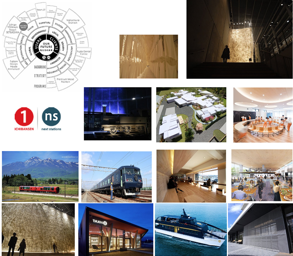 それがご縁で以後、鉄道駅を中心とした広場や公園、まちづくり、公共施設、保育園・幼稚園、医療施設、障害者支援施設、旅館、集合住宅などの他、鉄道車両、バス、船舶などをグラフィックからトータルに手掛けている。というと格好良さそうに聞こえてしまうが、実際は日々現場に張り付いて、無責任な発言や 大きいだけの声を掻き分けて、アンケートや多数決の声を疑い、声なき声の奥にある、見えないニーズを探り当てる作業を続けている。建築や街に寄せられるたくさんの声に寄り添い、ニーズや課題を整理し、見える化し、課題解決に向けた優先順位と知恵を共有することも私たちの大切な仕事だ。
