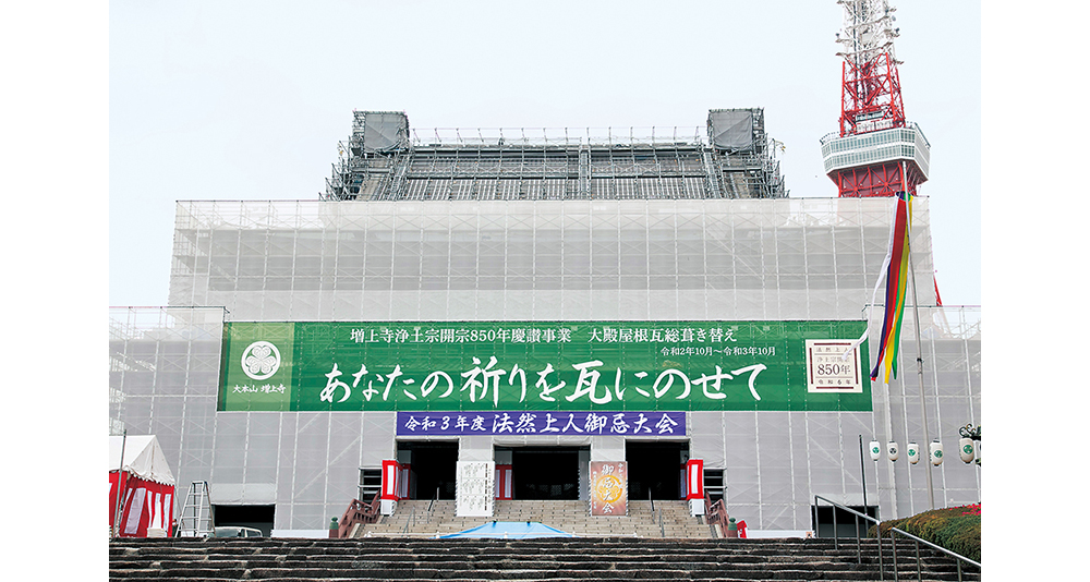 2024(令和6)年に浄土宗開宗850年の節目を迎えるにあたり慶讃事業を推進。改修事業の一環として、約50年ぶりに大殿本堂の屋根瓦をこれまでの粘土瓦からチタン瓦に葺き替える工事が進んでいます。