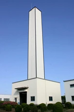 落錘試験とは、例えば自動車のボディを高い塔の上から落下させて破壊し、その壊れ方、エネルギーの吸収され方を調べて、軽量で安全なボディ設計のためのデータをとるテストです。当社の落錘試験機は国内最大です。