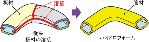 ハイドロフォーム技術を適用すると閉断面・溶接レス構造の実現