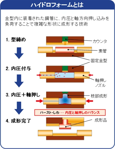 複雑な閉断面構造を造るハイドロフォーム加工技術