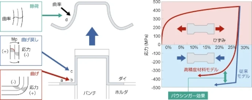 バウシンガ―効果を考慮した材料モデルを適用することで、成形解析精度向上を実現