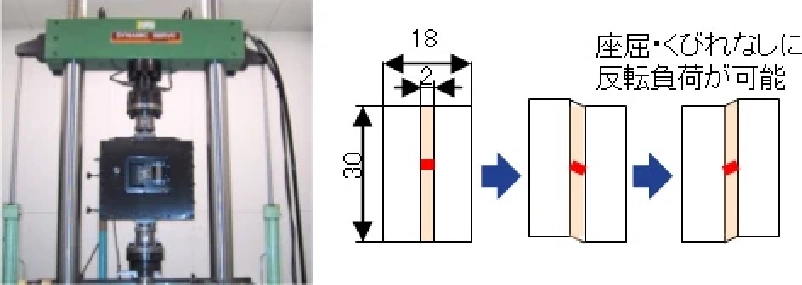 単純せん断試験によりハイテンでも高ひずみ域までの反転負荷経路の材料試験が可能になり、バウシンガー効果を考慮した材料モデルの高精度なパラメータを取得