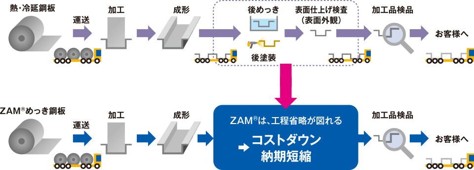 後めっき・後塗装工程省略によるコストダウン