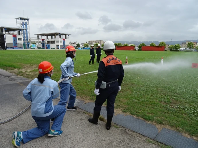- 消防署と連携した自衛消防組織の消火技能の向上(消防署との合同訓練、指揮者教育等)