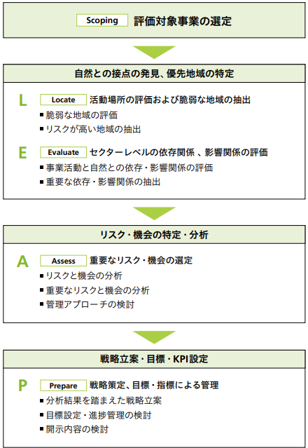 当社は、TNFDの推奨するLEAPアプローチに沿った評価・分析を行い、自然関連の開示を行っています。