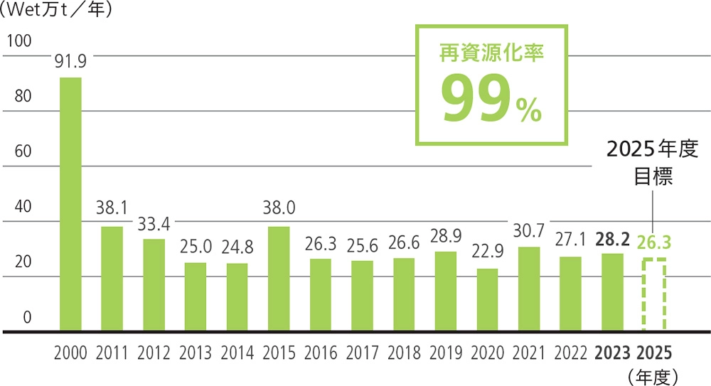 また、最終処分量についても2025年度目標達成に向けて引き続き低減の取り組みを推進しています。