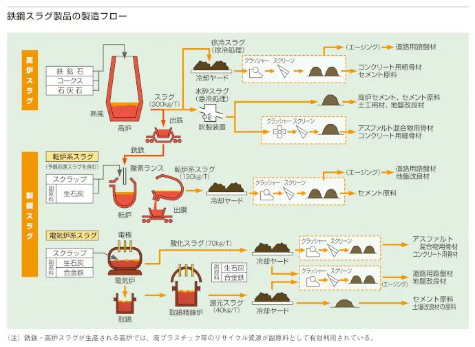 - ※1金属精錬の際に、溶融した金属から分離されて回収される副産物。道路の路盤材やセメントの原料などになる。