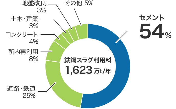 | 製鋼スラグ | 450万t | 路盤材、土木資材、肥料他 | 97% |