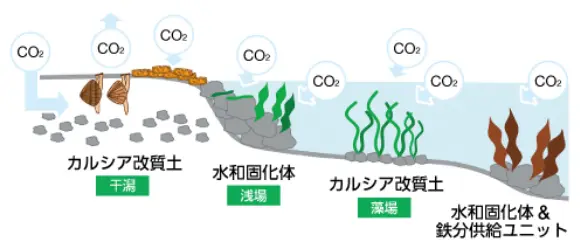製鉄所副産物のスラグを活用した海域向け施肥材による藻場(ブルーカーボン生態系)造成に関する技術を開発・実用化しています。