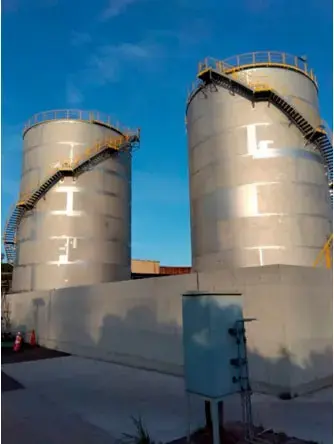 当社製造拠点では、万一、貯槽内の薬品溶液等が漏洩した場合にも外部への流出を防止するため、貯槽廻りに堰(防液堤)を設置しています。