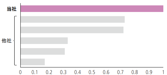 LexisNexis社「PatentSight®」は、特許が有する技術価値と市場価値に基づく特許価値評価PAI (Patent Asset Index™)を提供しています。当社の2024年における特許価値PAIは、国内外の競合他社よりも高い価値を示しています。経営戦略に応じて、世界・地域における事業収益の向上や社会・経済・産業の発展に貢献するべく、国内および外国特許出願の厳選を行うとともに、重要度の高い特許を質と量の両方の観点から拡充・蓄積することで価値の高い特許資産を増やしています。