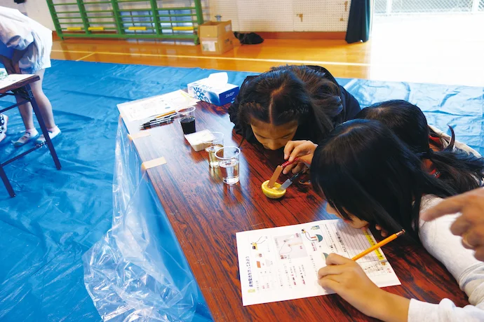 各製鉄所では近隣の小学校等への出張授業を行っています。九州製鉄所大分地区では、2007年より毎年実施していましたが、コロナ禍での中断を経て、2023年度に4年ぶりの授業を再開しています。本年度は、2つの小学校、計103名の児童に対し科学実験の授業を行いました。