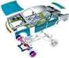 高強度鋼板(ハイテン)の開発・適用拡大による自動車の軽量化、ハイブリッドカー向けの高効率電磁鋼板の開発による環境負荷低減、重要保安部品である自動車の足回り商品の開発、さらには自動車・部品メーカーへのソリューション提案を通して、自動車の進化に貢献しています。