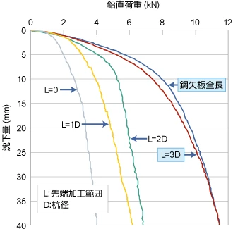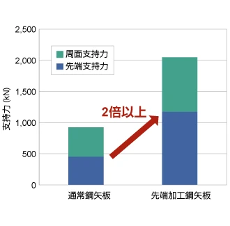 先端部を加工することで通常鋼矢板の2倍以上の支持力を発揮
