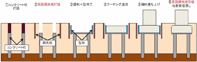 「仮設土留め」と「支持杭」の機能を合わせ持ち、工期短縮を実現