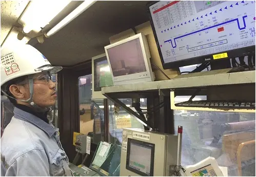 堅いチタン・特殊ステンレスの薄板を焼きなましし、表面に浮いた汚れを酸で洗うラインで働いています。生産ラインの入側、出側で密に連絡を取りながらチームで仕事を行っています。