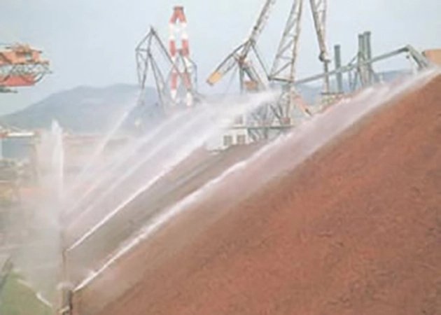 原料ヤードからの粉じん飛散防止のため、CPUコントロールによる自動散水を実施しています。