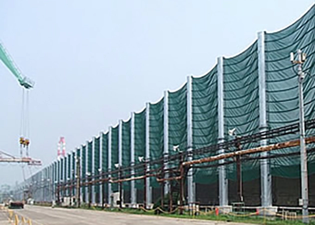 5~9月期の南系の風向きを想定し、近隣住宅地域に対して粉じん飛散低減効果の高い、風上側に設置しています。