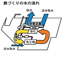 製鉄所で使用する水は94%を循環使用しており、新しい水の補給はわずか6%です。
